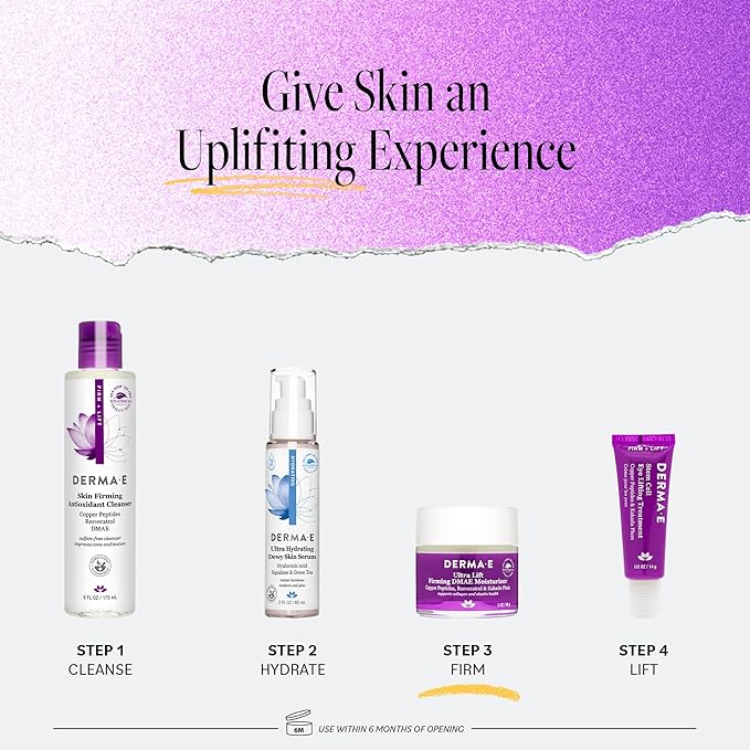 - DAILY SKIN CARE: For best results, apply the firming face cream daily, morning and night. Gently stroke the facial moisturizer over the entire face and neck. Pair with DERMA E Ultra Lift Concentrated DMAE Serum for even more effective and intensive hydration.
