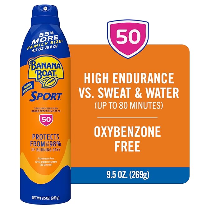 Banana Boat Sport Ultra SPF 50 Sunscreen Spray, 9.5oz | Banana Boat Sunscreen Spray SPF 50, Oxybenzone Free Sunscreen, Spray On Sunscreen, Water Resistant Sunscreen, Family Size Sunscreen, 9.5oz