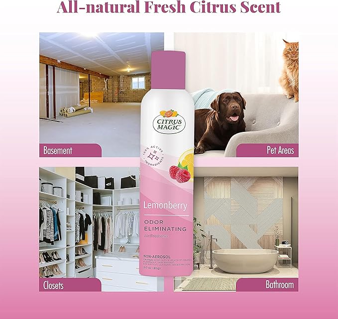 Citrus Magic Odor Eliminating Air Freshener Spray, Lemonberry, 3-Ounce, Pack of 3