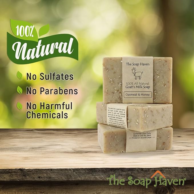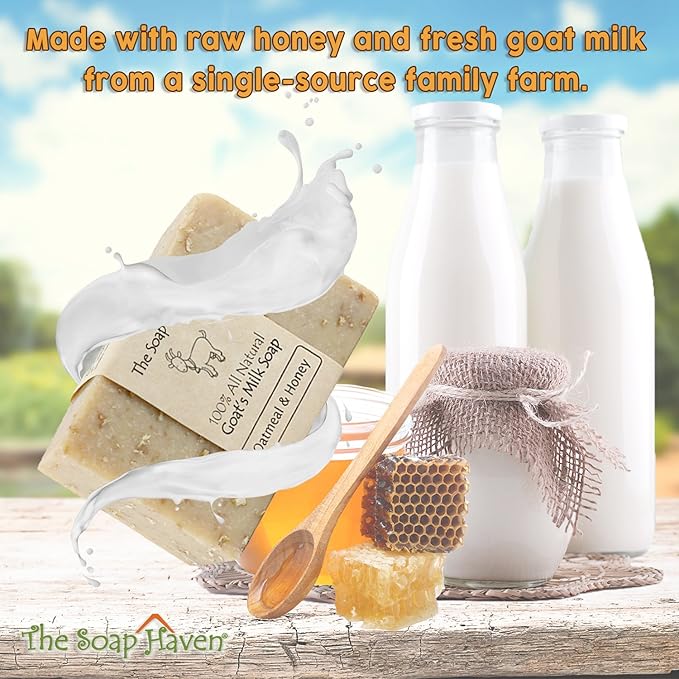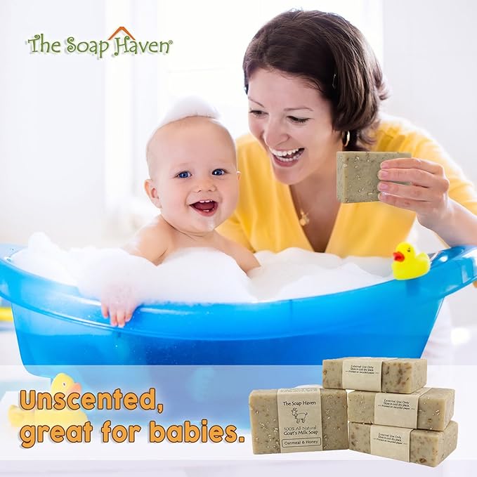Oatmeal Soap - 4 Oatmeal & Honey Goat Milk Soap Bars, Handmade in USA, All Natural, Unscented, SLS Free, No Parabens