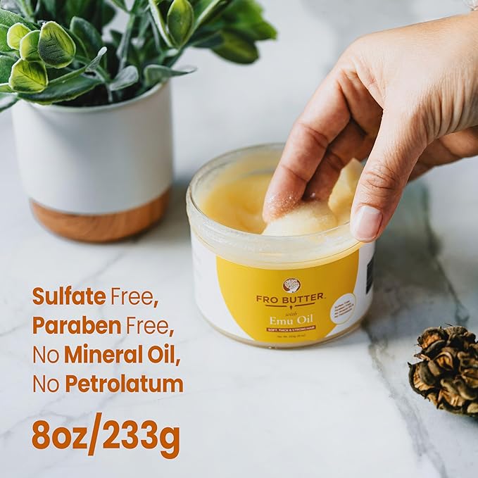 Emu Oil for Hair Growth | For Black Women | Natural Hair Butter | Deep Moisturizer for Dry, Brittle Hair | 8 oz