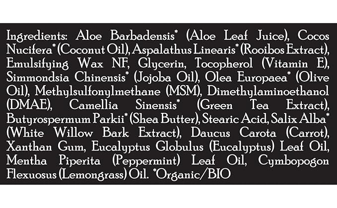 - Key Ingredients: Natural & Organic ingredients, including aloe vera, jojoba oil, vitamin E, and green tea.