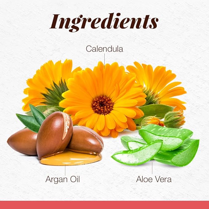 - Infused with Moroccan Argan oil, Aloe Vera, and Calendula that cleanses and revitalizes skin