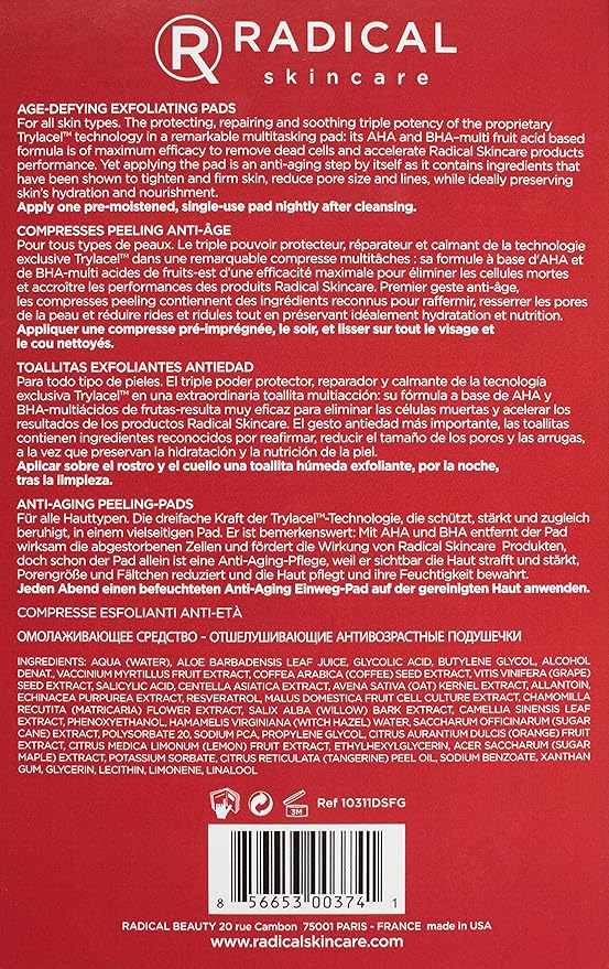 - Our ingredients have been shown to improve skin elasticity and bid a permanent farewell to dull skin with radical age defying exfoliating pads