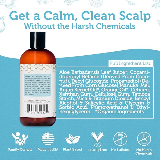Era Organics Manuka Honey Dry Scalp Shampoo - Sulfate Free, Soothing and Moisturizing for Damaged Hair - Family Friendly for Women or Men
