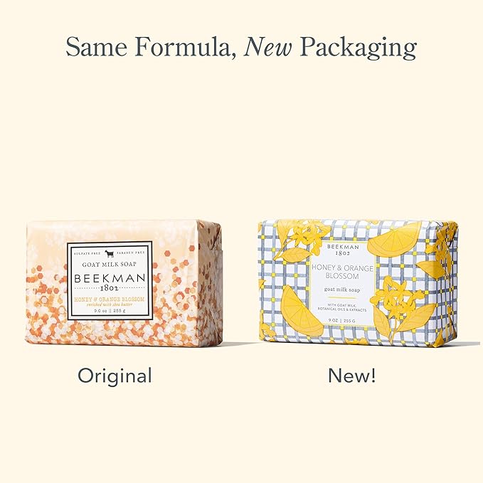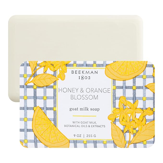 Beekman 1802 Goat Milk Body Soap Bar, Honey & Orange Blossom - Scented - 9 oz - Nourishes, Moisturizes & Hydrates - 100% Vegetable Soap with Lactic Acid - Good for Sensitive Skin - Cruelty Free