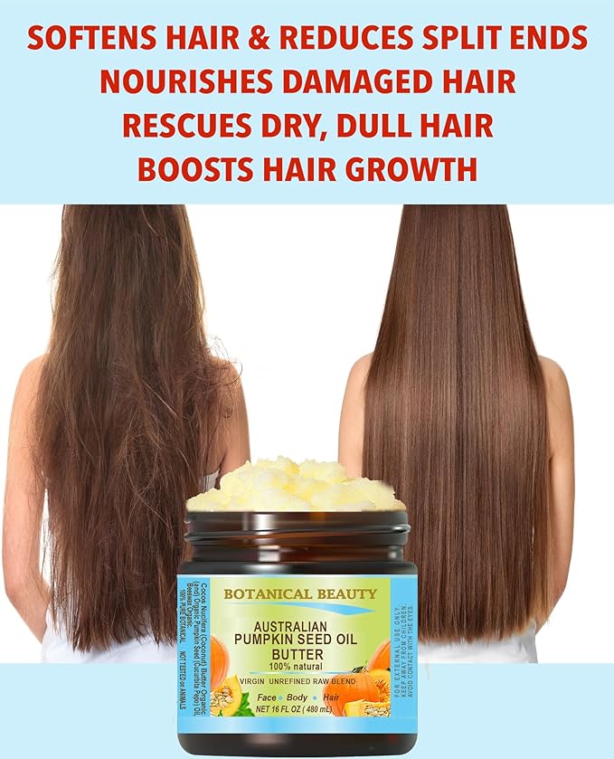 Botanical Beauty PUMPKIN SEED OIL BUTTER Australian Natural VIRGIN UNREFINED RAW for Face, Skin, Damaged Hair, Lip, Nails (4 Fl Oz)