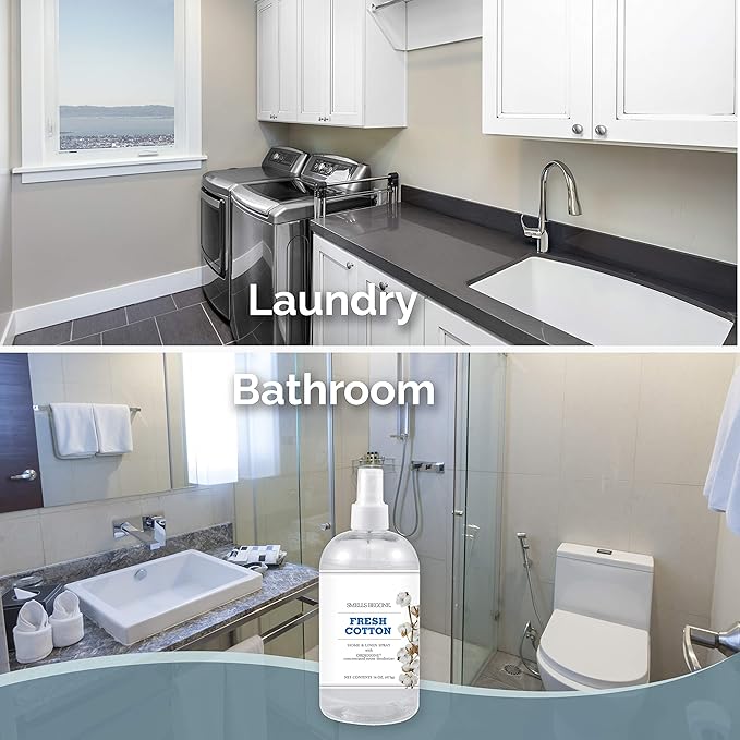 SMELLS BEGONE Air Freshener Home and Linen Spray - Odor Eliminator - Made with Essential Oils - Fresh Cotton Scent - 2 Pack - 16 Ounce