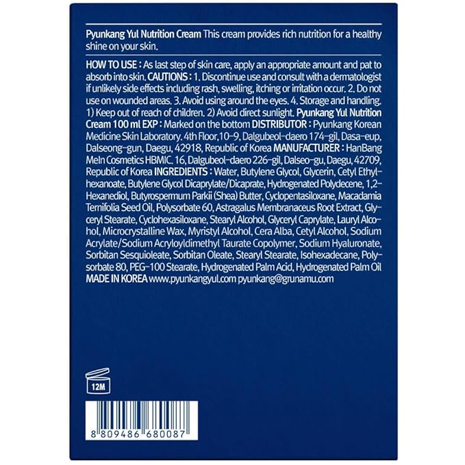 PYUNKANG YUL Nutrition Cream - Korean Skin Care Face Cream - Facial Moisturizer for Dry and Combination Skin Types - Healthy Natural Ingredients Shea Butter, Macadamia Deeply Moisturize Skin 3.4 Fl oz