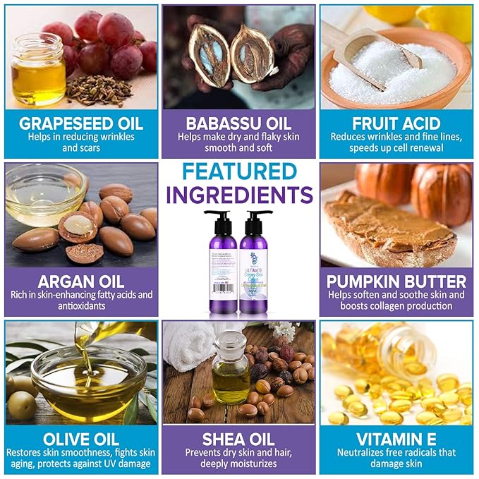 - PLUMP UP SKIN WITH THIS INTENSE MOISTURIZER: Lack of moisture can lead to scaly or rough texture and wrinkles becoming more pronounced. Our face and body lotion gives your skin that much deserved moisture while trapping water in the skin’s layers for longer hydration. Infused with deeply moisturizing ingredients like Coconut Oil, Argan Oil, Macadamia Nut Oil, and Almond Oil.
