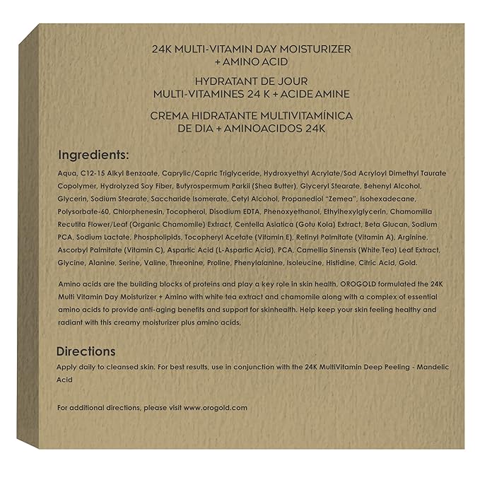Orogold 24K Multi-Vitamin Day Moisturizer with Amino Acids, Day Cream with Vitamin C, Vitamin A and Vitamin E, 52 G / 1.83 Oz.