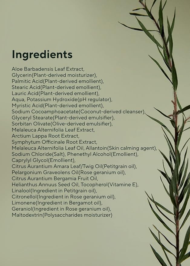 - [ Nourishing Ingredients ] Enriched with Aloe vera leaf extract, tea tree leaf extract, burdock root extract, comfrey root extract, tea tree leaf oil for all skin type.