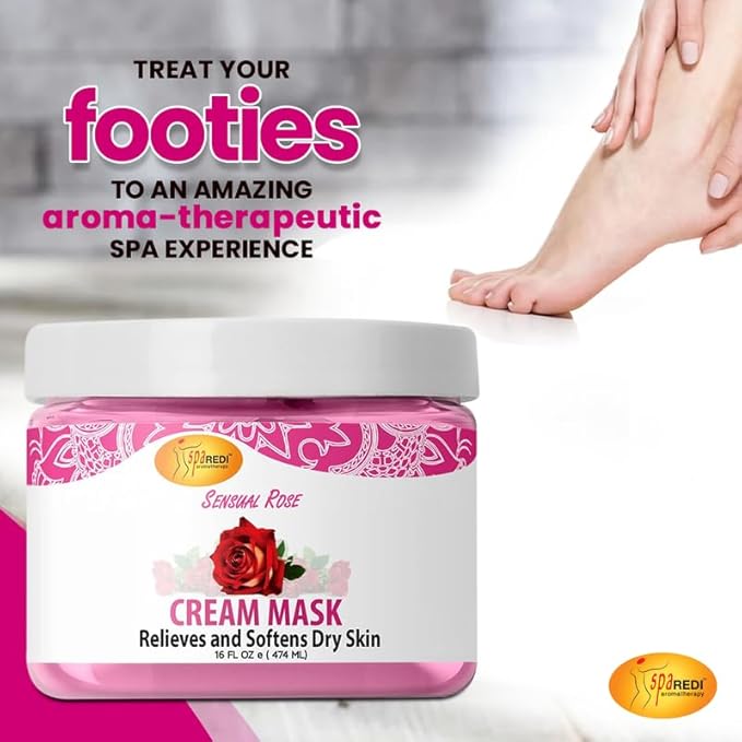 SPA REDI - Body and Foot Cream Mask, Sensual Rose, 16 Oz - Pedicure Massage for Tired Feet and Body, Hydrating, Fresh Skin - Infused with Hyaluronic Acid, Amino Acids, Panthenol, Comfrey Extract