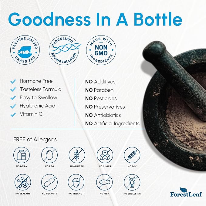 ForestLeaf Multi Collagen Pills with Hyaluronic Acid + Vitamin C | Hydrolyzed Collagen Supplements for Women or Men | Multi Collagen Capsules Peptides for Skin, Wrinkles, 240