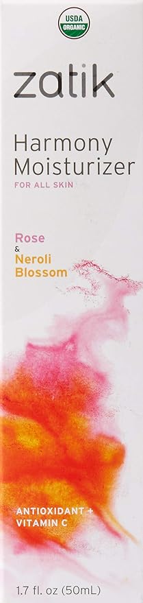 Zatik Naturals - Harmony Moisturizer with Rose and Neroli Blossom, USDA Organic, Vegan, Non GMO, Gluten Free, Soy Free, Alcohol Free, pH Balanced, Biodegradable, 1.7 fl oz 50ml