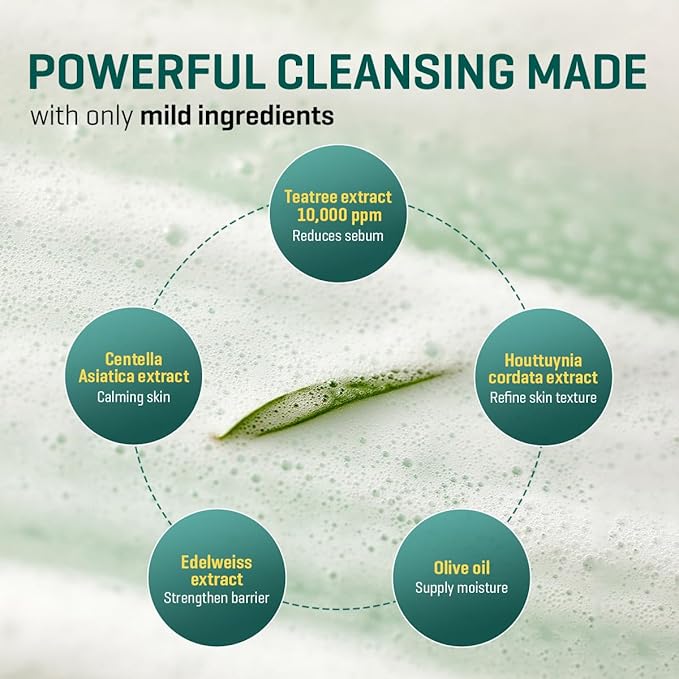 - MIRACLE CLEANSING BAR : Miracle cleaning bar uses a mixture of natural tea tree(10,000 ppm), Houttuynia, Organic olive oil and argan oil keep skin moisturized even after the face wash. 20 types of artificial ingredients are Free, including artificial dye and chemical detergent. this facial and body cleanser is EWG green grade proved