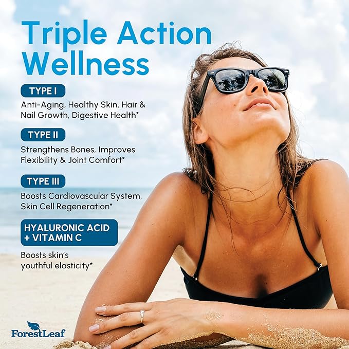 ForestLeaf Multi Collagen Pills - Collagen Men & Collagen Women - Hydrolyzed Collagen Supplements with Vitamin C & Hyaluronic Acid - Collagen Capsules for Hair, Skin & Nails (240 Peptide Capsules)