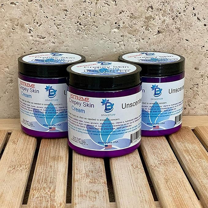 Diva Stuff Extreme Crepey Skin Body & Face Cream with Hyaluronic Acid, Alpha Hydroxy and more for Dry & Damaged Skin, 8oz - Unscented (Made in the USA), (3 Pack)
