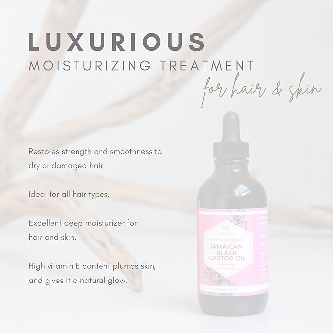 - Benefit from multi-use oil for hair and skin. Our Jamaican Black Castor Oil promotes hair growth and strength, moisturizes and repairs dry or damaged hair and eyelashes, and naturally treats dry and damaged skin. This makes it a versatile hair oil for black hair, and an all-in-one hair and skin solution.