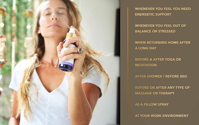 - HOW TO USE: Spray above your head and around your body for a refreshing aromatic experience. Ideal for use at home, work, or during yoga sessions to create a calming environment.