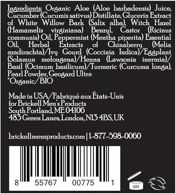 - Key Ingredients: Natural & Organic ingredients, including Cucumber, Witch Hazel, Peppermint & Aloe Vera.