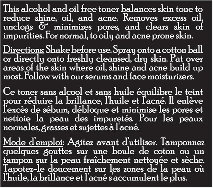 - Product Benefits : Balances skin tone, reduces shine, & minimizes pores Alcohol & oil free All Natural & Organic Refreshing peppermint & cucumber scent Comes with a convenient spray cap Balances skin tone, reduces shine, & minimizes pores Alcohol & oil free All Natural & Organic Refreshing peppermint & cucumber scent Come⦠See more
