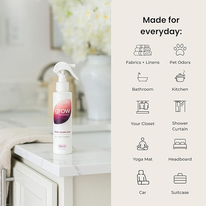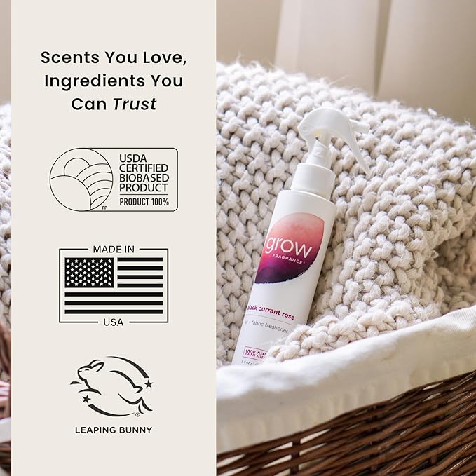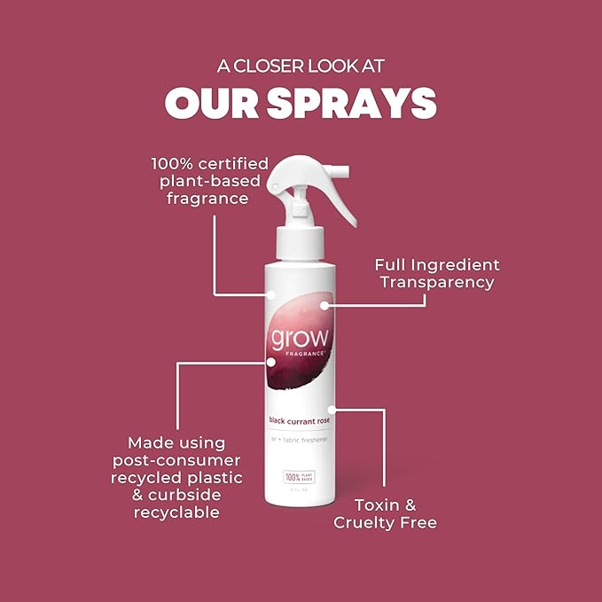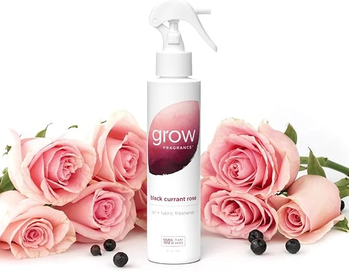 Grow Fragrance - Certified 100% Plant Based Air Freshener + Fabric Freshener Spray, Made with All Natural Essential Oils, Black Currant Rose - Limited Edition!