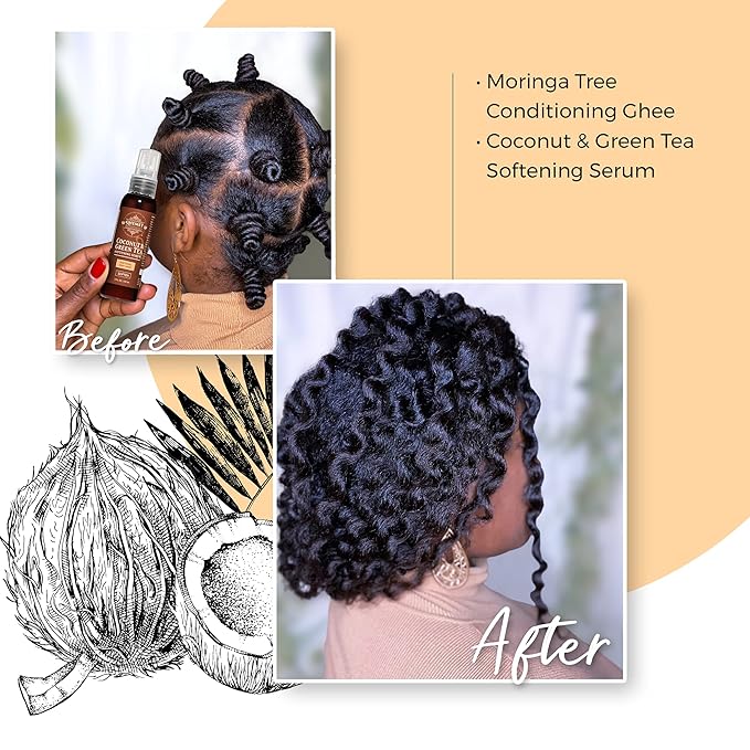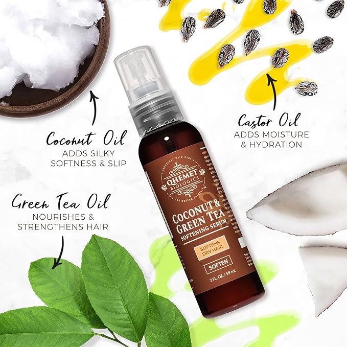 Qhemet Biologics Coconut & Green Tea Softening Serum - Lightweight Hair Serum to Soften, Smooth & Revitalize Dry Hair - Adds Slip and Shine to Thin, Fine, Low Porosity Strands (2 oz)