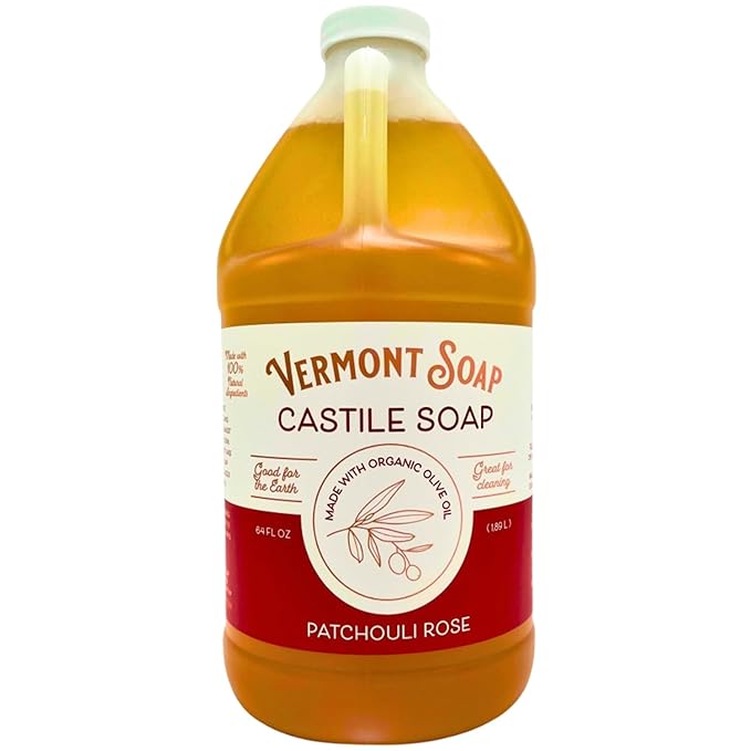 Vermont Castile Soap Patchouli Rose, Gentle Liquid Soap for Sensitive Skin & Natural Body Wash, Organic Hair Shampoo for Oily Hair, Aloe Castile Soap for Men & Women - 64 Oz