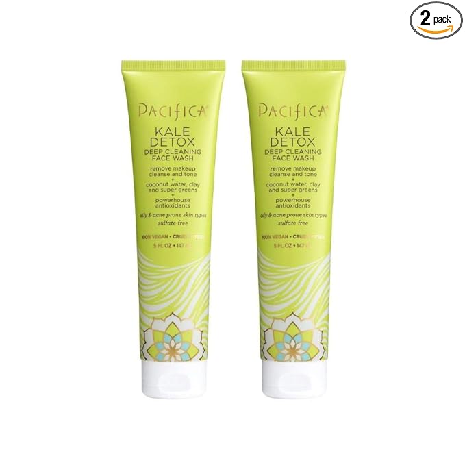 Pacifica Beauty Kale Detox Deep Cleaning Daily Face Wash + Cleanser, Coconut Water + Aloe Vera, For Oily and Blemish Prone Skin, 2 Pack, Sulfate and Paraben Free, Vegan and Cruelty Free
