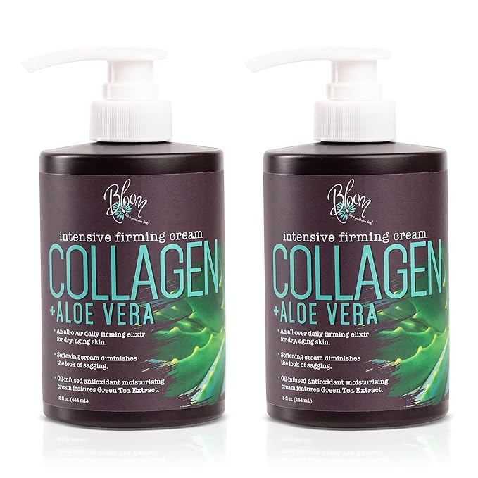 - COLLAGEN CREAM – Collagen is a protein found naturally in our skin, bones, & connective tissue, and it plays a critical role in maintaining our skin's elasticity & firmness. As we age, our body's natural collagen production declines, which can lead to the appearance of fine lines, wrinkles, & sagging skin. This BLOOM Collagen + Aloe Vera body cream helps boost skin elasticity, restore collagen within your skin, and hydrate + nourish your skin, leaving it feeling more soft, supple, & radiant.
