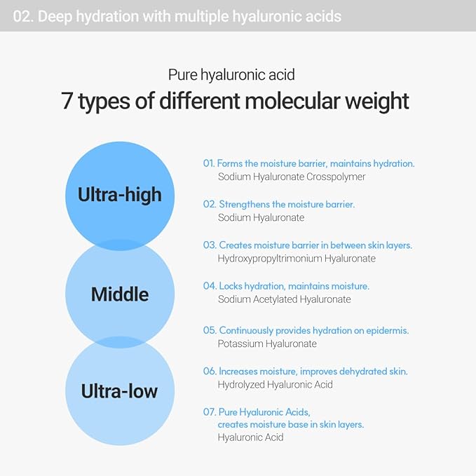 - ACTIVE INGREDIENTS: 7 different types of HYALURONIC ACIDS hydrate skin from the deepest layer of skin to the very top. Ingredients like caffeine and vasoconstrictor de puff and soothe, while Vitamin E and other enzymes work as a natural exfoliant, sloughing off dead skin cells to promote beautiful skin. Meanwhile, the natural ingredients in this gentle face toner work to calm sensitive skin.