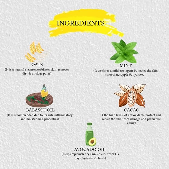 ROOTS AND HERBS Cold Process Gourmet Cleansing Bar Oats, Cacao & Mint Scrubby Body Soap 100% Vegan, Natural & Ayurvedic Gluten Free Soap Suits for All Skin Types for Men & Women - (110 gms/3.8 oz)