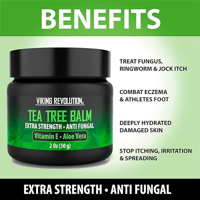 Viking Revolution Tea Tree Oil Cream - Super Balm Athletes Foot Cream - for Eczema, Jock Itch, Ringworm, Nail Treatment - Soothing Skin Moisturizer for Itchy, Scaly, Cracked Skin, 2 Ounce (Pack of 1)