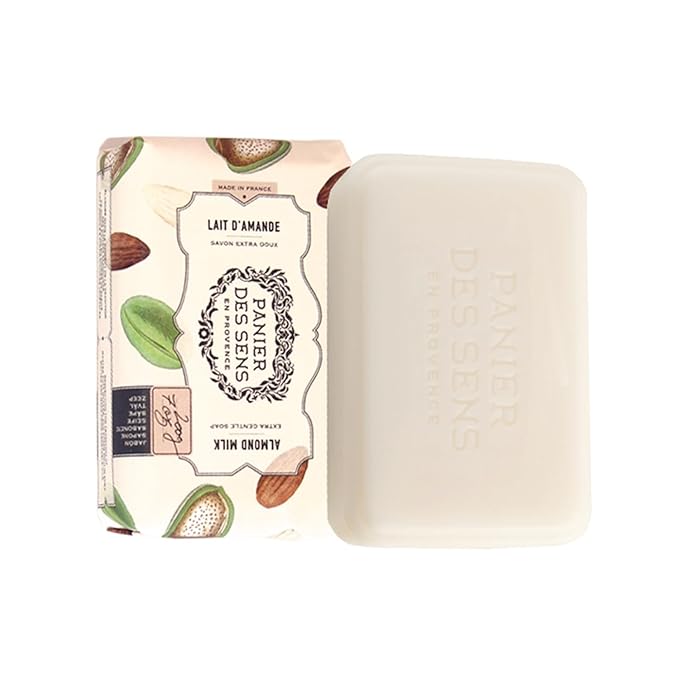 Panier des Sens - Almond Milk Bar Soap - Moisturizing Gentle Scented Soap Bar - Natural Soap with Shea Oil - 97% natural ingredients Made in France - Vegan Friendly - Body and Hands - 2x7 oz