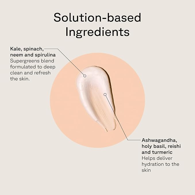 - SUPERGREENS & ADAPTOGENS - Our green face wash combines kale, spinach, neem, spirulina, holy basil, reishi, and ashwagandha for a superfood boost that purifies, hydrates, and rejuvenates skin daily