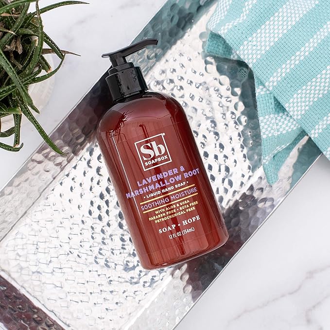 Soapbox Liquid Hand Soap, Lavender & Marshmallow Root - Gentle, Moisturizing Hand Cleanser, Vegan & Cruelty Free Hand Wash for Kitchen and Bathroom, 12oz Pump Bottles (Pack of 3)