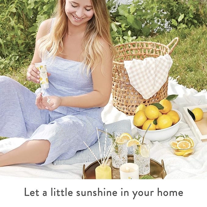 - Lemon Leaf Fragrance - Sunny and sparkling, this uplifting fragrance creates a green, citrus-filled escape for the home. This hydrating lotion is filled with notes of dewy leaves, crisp white wood accord, creamy lily of the valley, effervescent lemon verbena, bergamot oil, and geranium blooms.