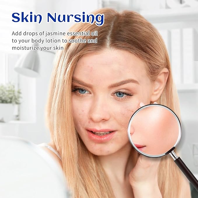 HIQILI Jasmine Essential Oil, Pure & Natural Jasmine Oil for Diffuser, Perfume, Shampoo, Aromatherapy