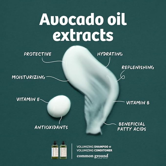 Common Ground All Natural Shampoo and Conditioner Set; Paraben and Cruelty Free, Organic, Vegan, Plant-Based Formula, Botanical Scent and Avocado Oil Extract, for Men and Women