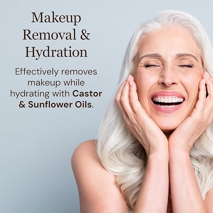 - Makeup Removal & Hydration – Effectively removes makeup while hydrating with Castor and Sunflower Oils.