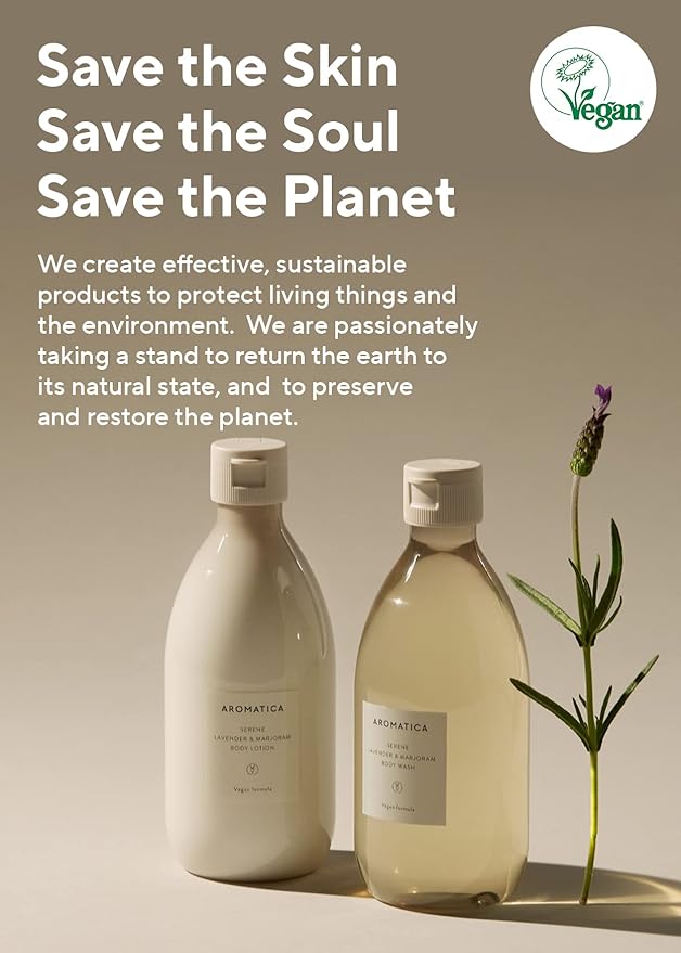 AROMATICA Serene Body Lotion Lavender & Marjoram, Vegan | Soothing Body Moisturizer | Light Relaxing Scent | for Normal to Dry Skin | with Shea Butter (10.14oz / 300ml)