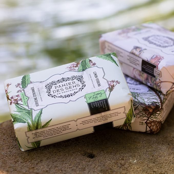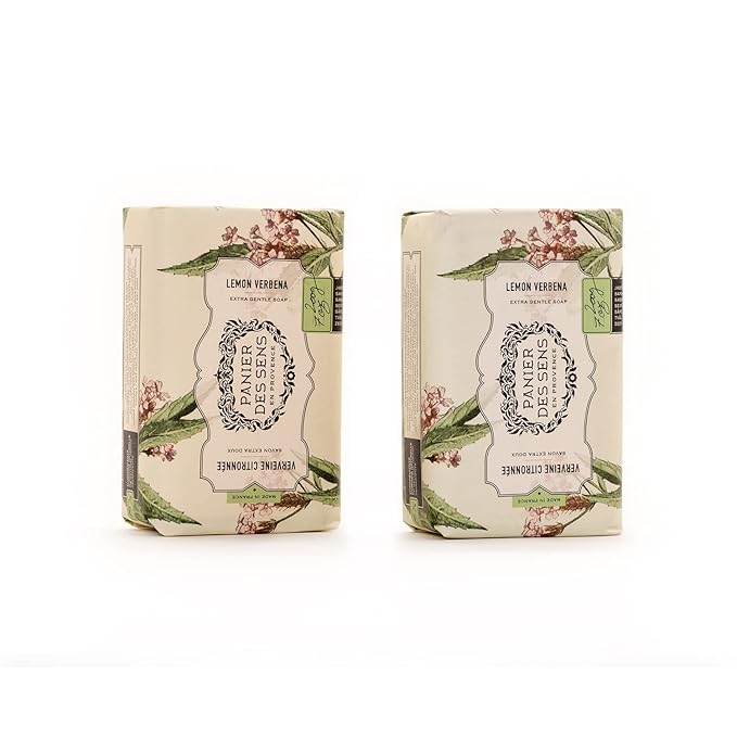 Panier des Sens Shea butter bar soap - 95% natural & Made in France - 2 bars, 7oz/200g each (Lemon Verbena)