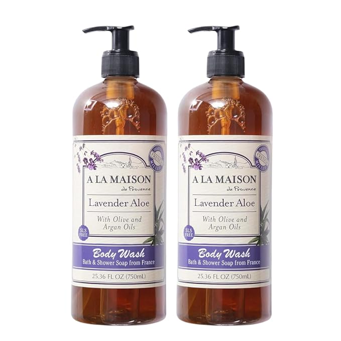 A LA MAISON French Hydrating Liquid Body Wash, Lavender Aloe - Natural Body Wash Made with Essential Oils - Biodegradable, Plant-Based, Vegan, Cruelty-Free, Alcohol & Paraben Free (25.36 oz, 2 Pack)