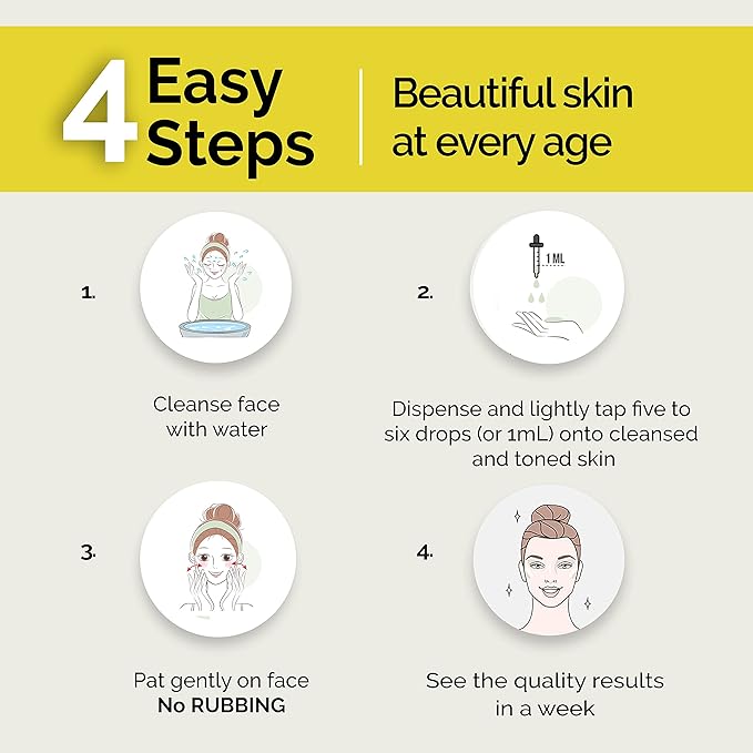 - INSTRUCTIONS FOR USE: Cleanse your face thoroughly and dispense five to six drops (or 1 mL) onto the hand and gently pat evenly on the face. For best results, use at night time. Shake well before each use & Avoid Rubbing. This hydrating serum quickly absorbs into your skin and regenerate, nourish and hydrates the skin, so that you glow throughout the day!
