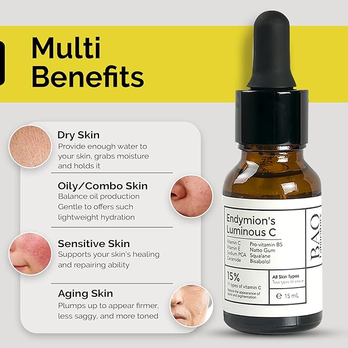 - ENDYMION’S LUMINOUS C FACE SERUM: BAO ENDYMION’S LUMINOUS C face serum is scientifically developed using the finest natural ingredients and herb extract. This anti aging serum is made with 11 types of vitamin C, two types of vitamin E, pro-vitamin B5, ceramide, and natto gums to improve the texture of your skin.
