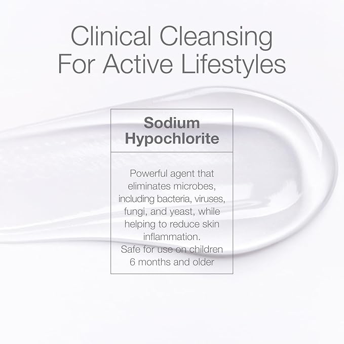 - Mild, but Efficacious Formula: Concentrated, patented shower gel is preserved with Sodium Hypochlorite and purposeful ingredients to deliver powerful results without unnecessary irritants.