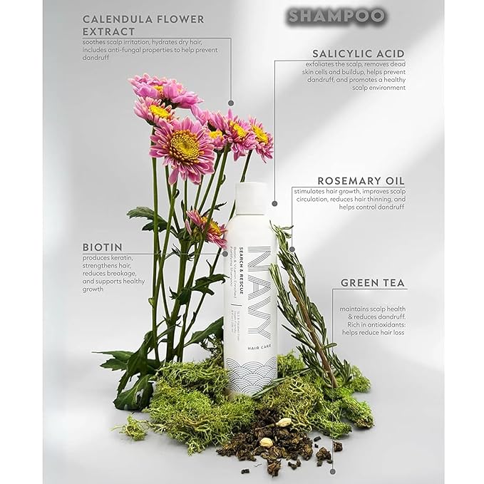 NAVY Hair Care Search and Rescue Shampoo & Conditioner Set | Biotin and Rosemary Oil Enriched for Hair Growth | Suited for All Hair Types | SLS & Paraben Free | 8 oz (Set of 2)