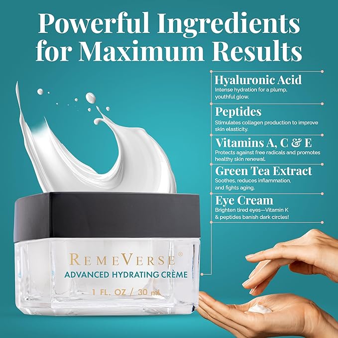 RemeVerse Advanced Hydrating Crème - Face Moisturizer with Hyaluronic Acid, Peptides & Vitamins - Ultra Hydration for All Skin Types - Long-Lasting Moisture & Nourishing Facial Cream for Women & Men