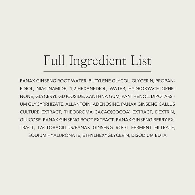 - [Ginseng hydration] Ginseng is a vital herbal ingredient that has been used for a long time for our body and skin health. It contains 80% of ginseng water and focuses on the benefits of ginseng itself, giving sufficient moisture and nutrition to the skin. It fills moisture and nutrition firmly to help keep your skin moisturized for a long period of time.